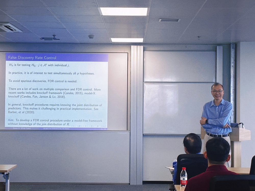 20241115日,美国宾夕法尼亚州州立大学统计系讲席李润泽教授应必威betway西汉姆院长金加顺教授和数学学院院长虞文武教授的邀请,在bw·西汉姆联做了题为Model-free Statistical Inference on High-dimensional Data的学术报告。