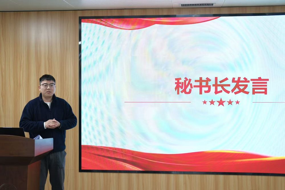 新任秘书长张军老师发言,他对学院的信任表示感谢,并表示秘书处将严格落实学院党政工作部署,始终以服务青年教师、助力成长发展为根本宗旨。未来将积极组织学术交流、教学研讨与文体活动,认真倾听青年教师心声、汇集发展需求,及时向学院反馈并推动落实,努力将委员会建设成为有活力、有温度、有实效的青年教师成长家园。